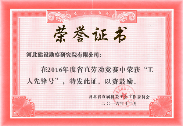 根據河北省直屬機關工會工作委員會2月27日發布的冀直工【2017】4號文件《河北省直屬機關工會工委關于2016年度勞動競賽情況的通報》,對在2016年度勞動競賽活動中成績突出的單位和個人進行表彰。其中,包括我公司在內的48個單位被評為省直“工人先鋒號”。