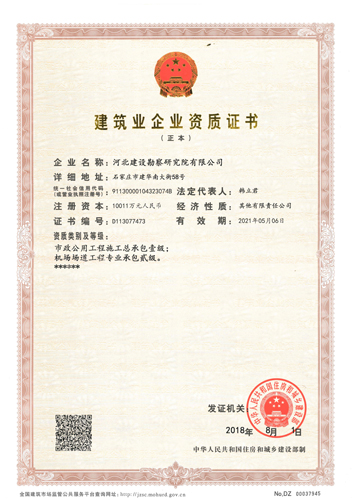 我公司于2018年8月1日取得了機場場道工程專業承包貳級資質證書,可承擔: