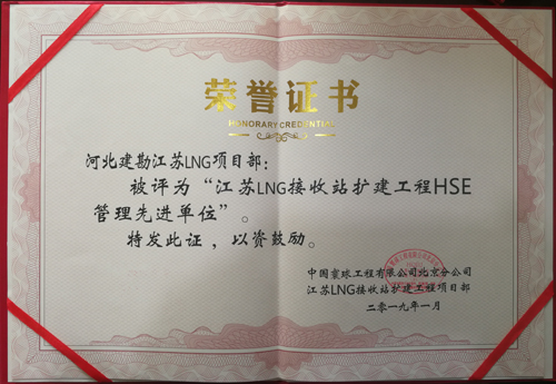 由于我公司的出色表現(xiàn),總包方中國寰球工程有限公司北京分公司對我公司和個人進(jìn)行了表彰,授予我公司“質(zhì)量管理先進(jìn)單位”和“HSE管理先進(jìn)單位”,并對周進(jìn)發(fā)、朱凱云、李友峰授予了“優(yōu)秀項目管理者”稱號,對賈沖、冀紫豪、任書星、李昭、張勇、張旺授予了“質(zhì)量管理先進(jìn)個人”稱號,對劉志峰、辛朝友、邢鐸、付嘉嘉、宋江來授予了“HSE管理先進(jìn)個人”稱號,分別頒發(fā)了錦旗、榮譽(yù)證書、獎牌。
