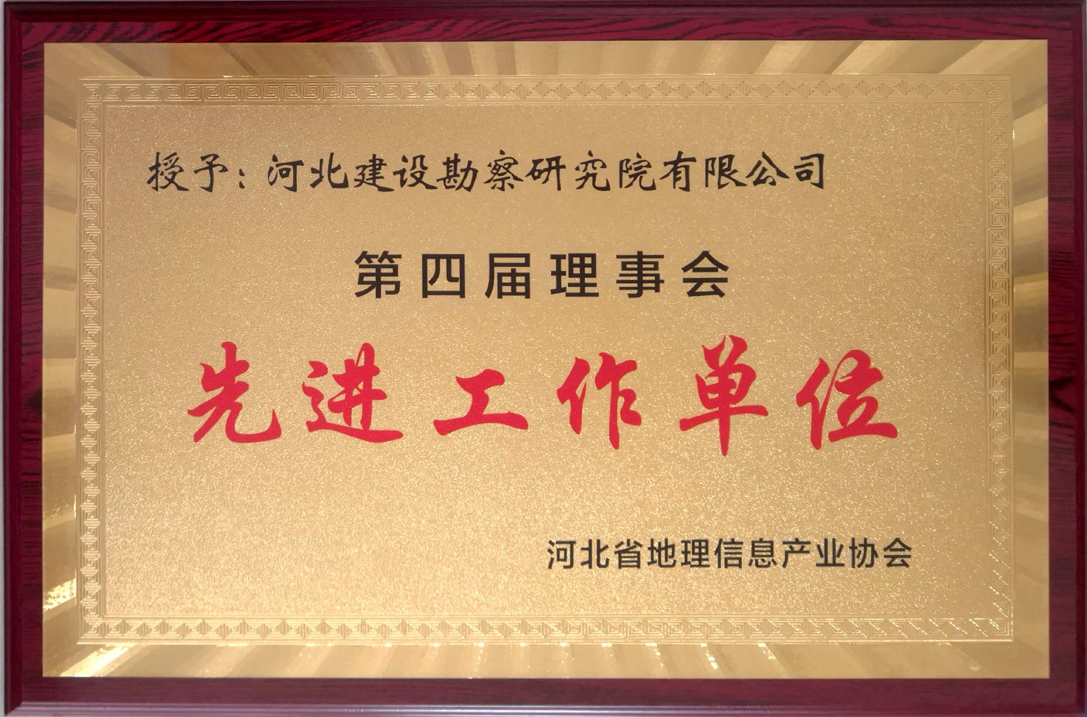 近日在石家莊富華大酒店召開的河北省地理信息產業協會第四屆五次會員代表大會上,我公司被授予第四屆理事會“先進工作單位”榮譽稱號。