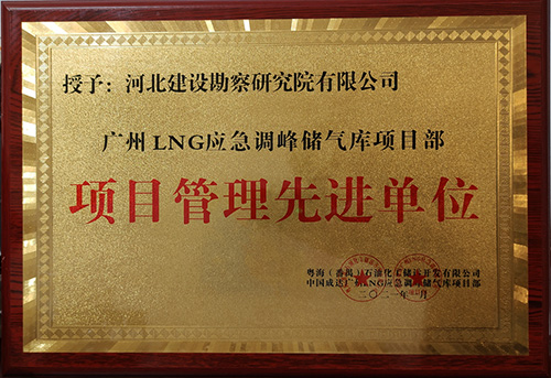 近日,由我公司承建的廣州LNG應(yīng)急調(diào)峰儲(chǔ)氣庫項(xiàng)目樁基工程,榮獲粵海番禺石油化工儲(chǔ)運(yùn)有限公司以及中國(guó)成達(dá)廣州LNG應(yīng)急調(diào)峰儲(chǔ)氣庫項(xiàng)目部聯(lián)合頒發(fā)的“項(xiàng)目管理先進(jìn)單位”的榮譽(yù)獎(jiǎng)牌。