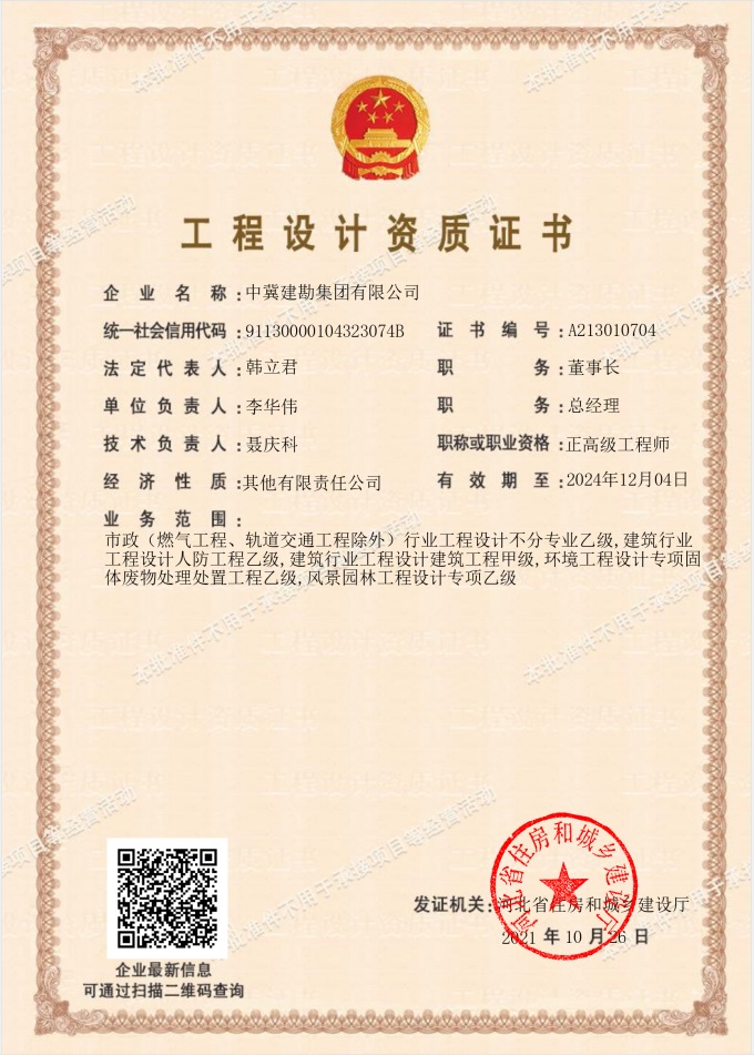 集團(tuán)公司取得環(huán)境工程設(shè)計專項(固體廢棄物處理處置工程)乙級資質(zhì)證書