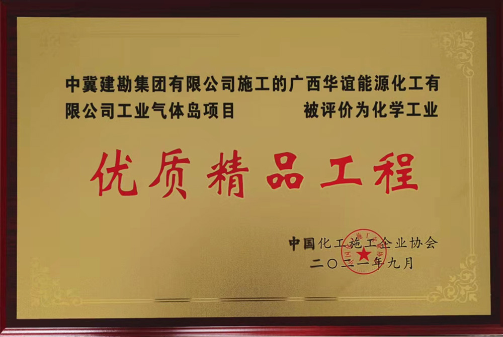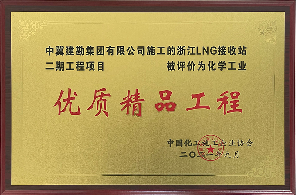 近日,由我公司承建的浙江LNG接收站二期儲罐樁基工程施工項目、廣西華誼能源化工有限公司工業氣體島項目兩項工程榮獲中國化工施工企業協會頒發的“優質精品工程”獎。