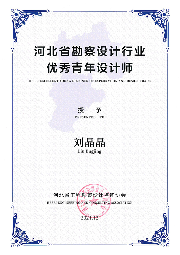 李友東、劉晶晶榮獲“河北省勘察設(shè)計(jì)行業(yè)優(yōu)秀青年設(shè)計(jì)師”稱號