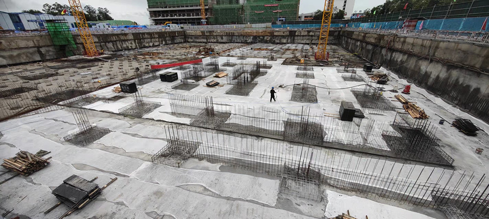 該項目位于海口市江東新區,項目占地面積10303㎡。地下建筑面積20768.21㎡,地上建筑面積為26759.03㎡,辦公主樓十二層,東、西配樓地上五層。于2021年9月13日開工建設。