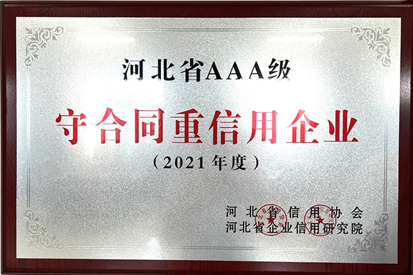 公司獲得“河北省誠信共建企業”、“2021年度河北省AAA級守合同重信用企業”榮譽