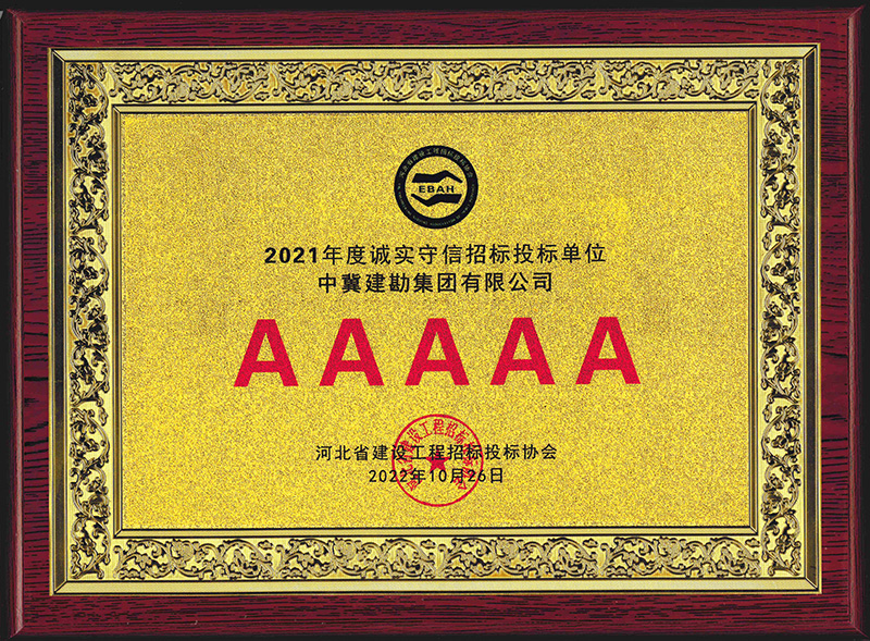 近日,我公司被河北省建設(shè)工程招標(biāo)投標(biāo)協(xié)會(huì)評為2021年度河北省建設(shè)工程招標(biāo)投標(biāo)誠實(shí)守信5A級(jí)施工企業(yè)。
