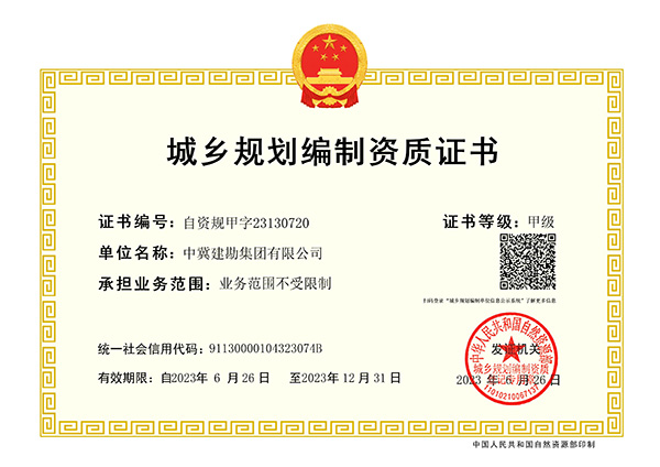 集團公司喜獲城鄉(xiāng)規(guī)劃編制甲級資質證書