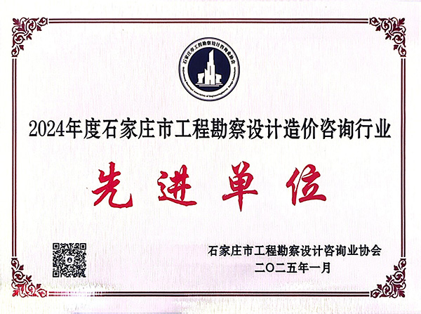集團公司榮獲石家莊市工程勘察設計咨詢行業2024年度“先進單位”稱號
