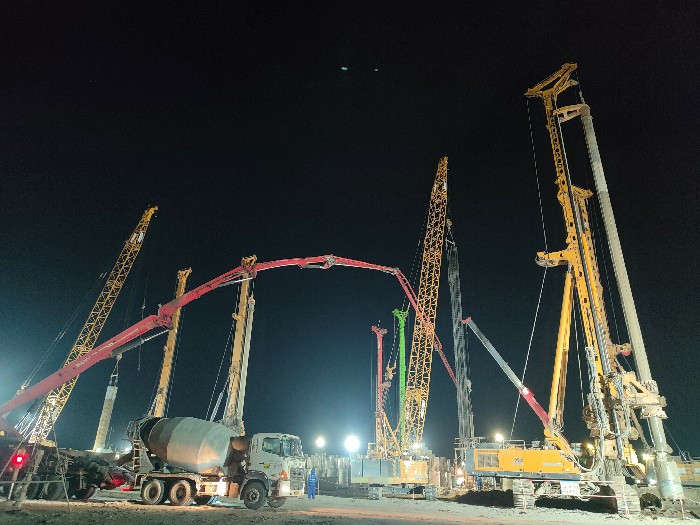 本項(xiàng)目位于福建省福清市,由萬華化學(xué)(福建)碼頭有限公司投資建設(shè),集團(tuán)公司承建了1#乙烯低溫儲罐的全部樁基工程。項(xiàng)目采用高承臺樁基結(jié)合樁柱一體化施工工藝,使用旋挖鉆機(jī)成孔,高質(zhì)量完成了全部448根大直徑鋼筋混凝土灌注樁施工,樁徑均為1200毫米。