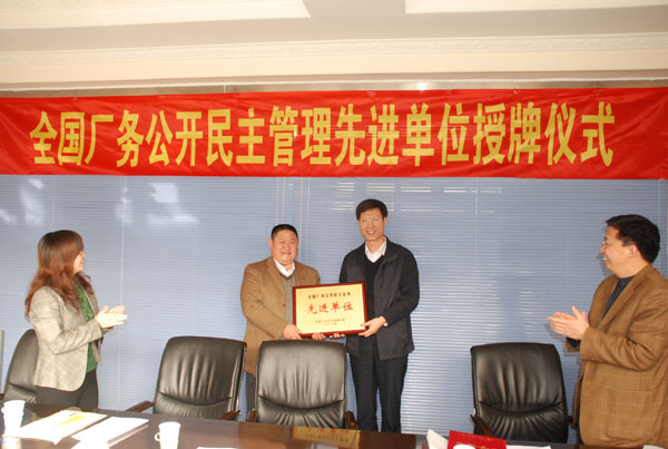 12月10日,省直工會范金龍主任陪同河北省總工會副主席劉書為等蒞臨我公司,頒發“全國廠務公開民主管理先進單位”獎牌、證書。全國榮獲此殊榮的共有408家,河北省直僅有我公司一家。